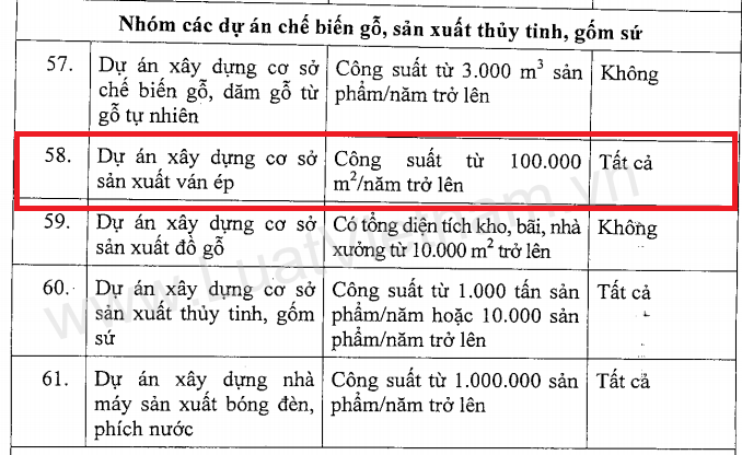 3. ĐỐI TƯỢNG PHẢI LẬP BÁO CÁO ĐÁNH GIÁ TÁC ĐỘNG MÔI TRƯỜNG CSSX VÁN ÉP